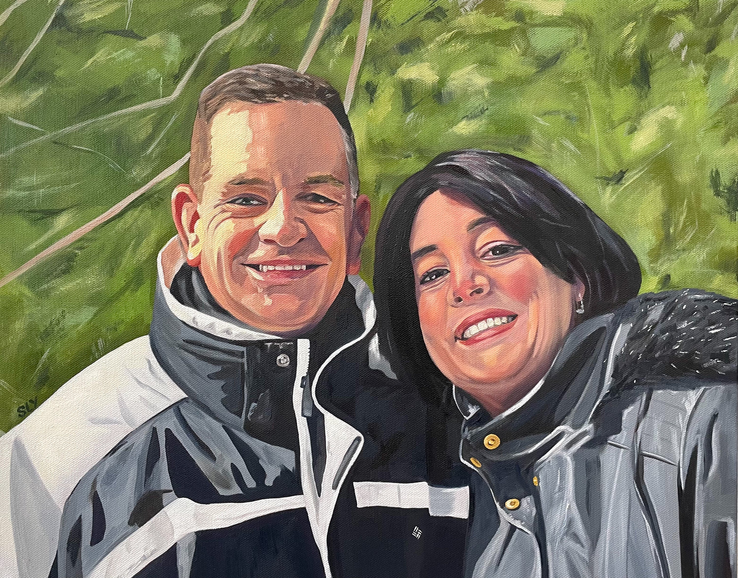 Custom portrait painting made with oil on 16x20" gallery wrapped canvas. Made from photo reference in full color, finished with matte varnish. These paintings typically take about four weeks to complete and are made on a first-come, first-served basis. Your order will be added to the queue and you will receive your estimated wait time in a confirmation email.