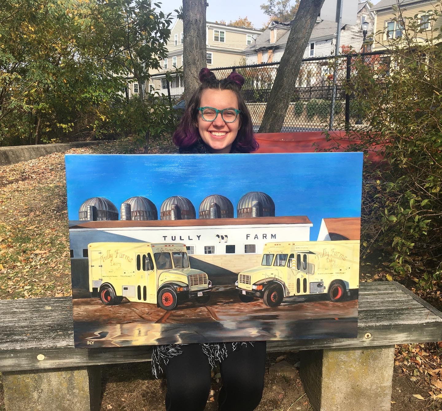 A highly detailed oil painting of Tully Farm, commissioned by the family owners to be hung in their farm store.
